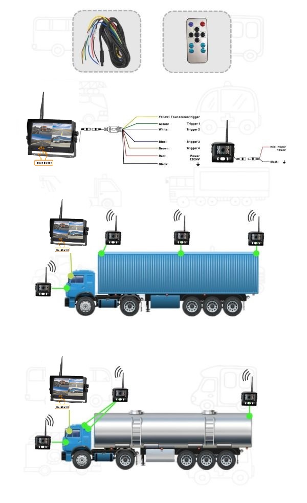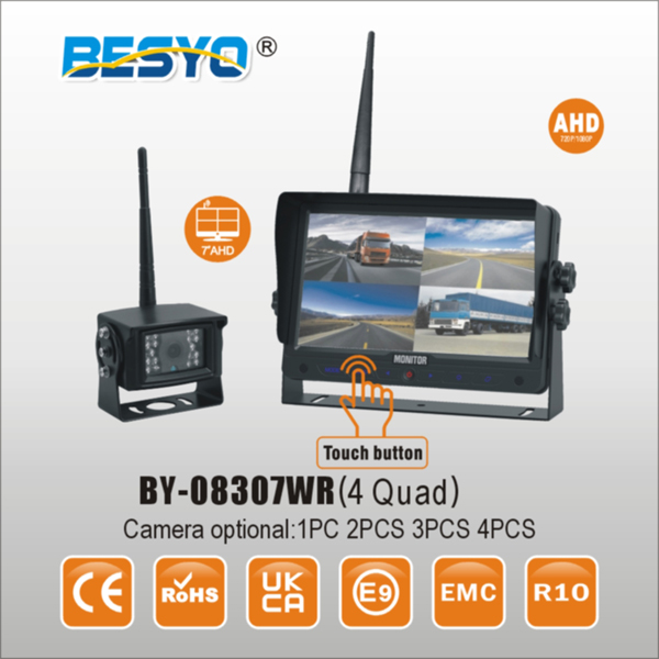 Sistema di telecamere wireless 4QUAD digitale AHD2.4G da 7 pollici con funzione DVR