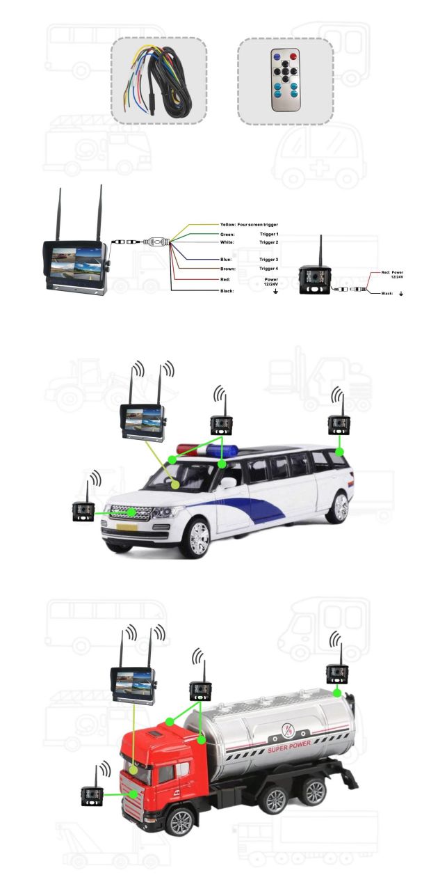 9 pollici 2.4g sistema di fotocamera digitale 4QUAD senza fili, con funzione DVR :