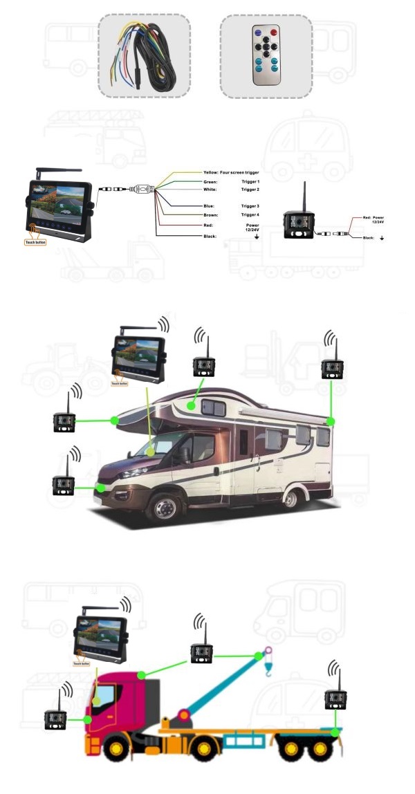7 pollici 2,4 g Digital 4QUAD wireless monitor camera system,