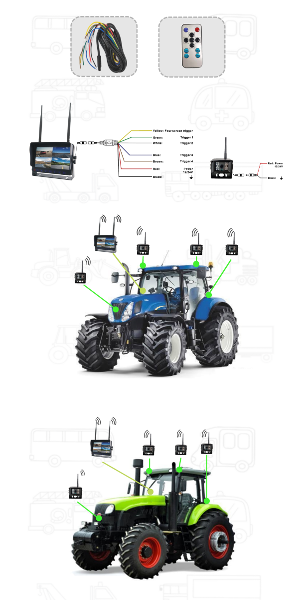 7" 2.4G sistema fotografico digitale 4QUAD senza fili, con funzione DVR :