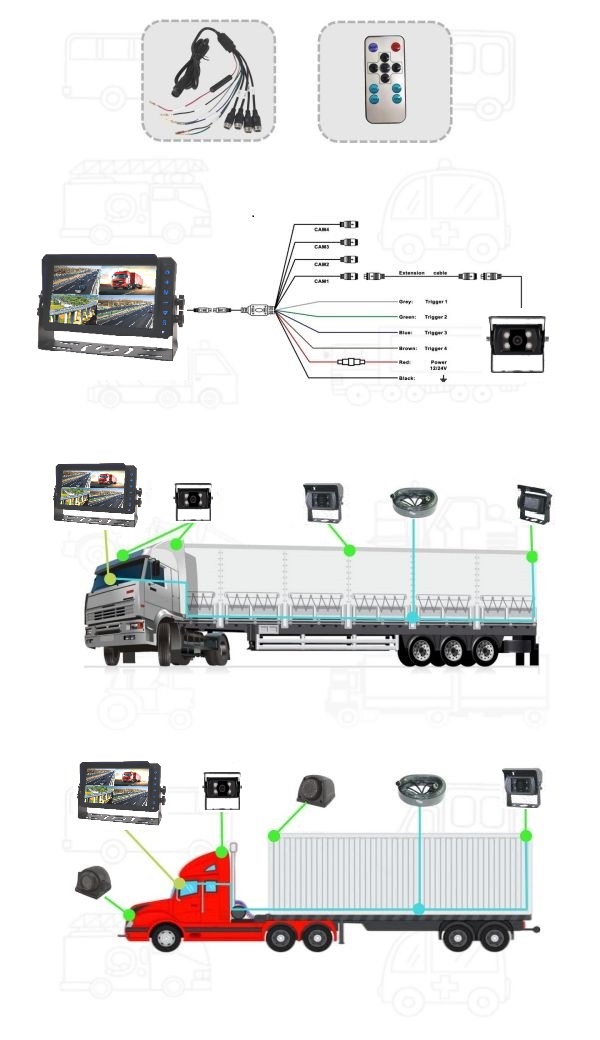 Sistema di telecamere e monitor a quattro vie separati da 7" e 4"