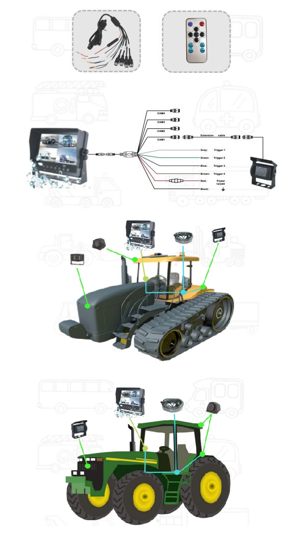 10,1 pollici QUAD divide un Monitor impermeabile con pulsante di contatto :