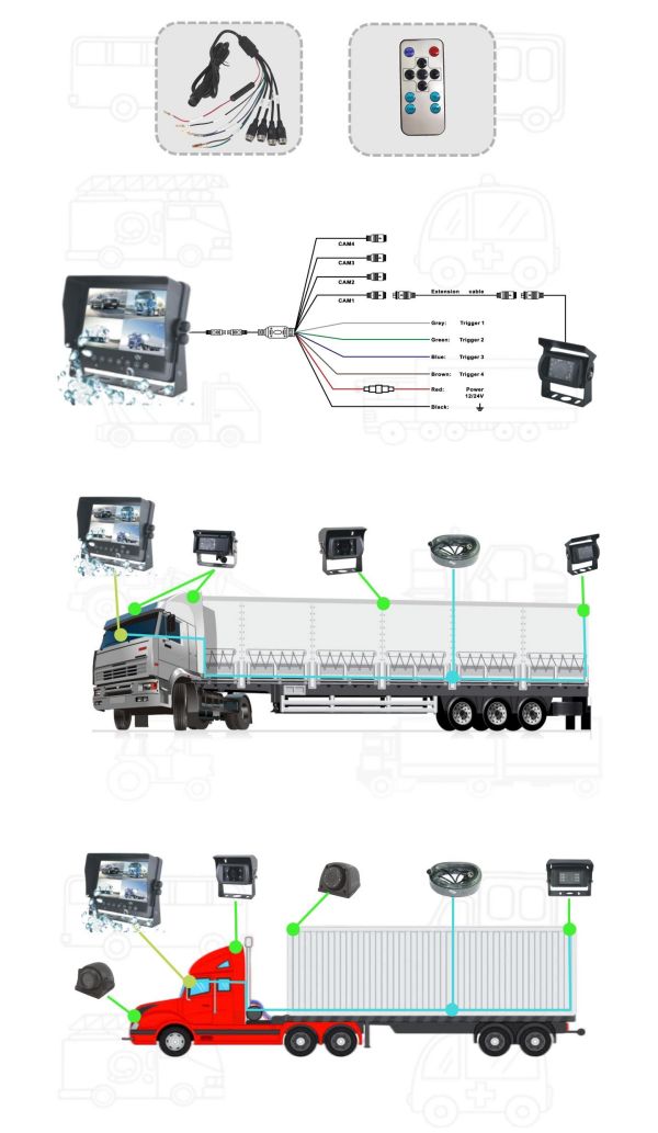 Monitor impermeabile da 10.1 pollici a 4 vie con pulsante touch :